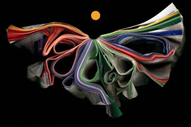 H φωτογράφος Cara Barer παίζει με το χαρτί και δημιουργεί μοντέρνα γλυπτά. Χρησιμοποιεί βιβλία, εγκυκλοπαίδειες, λεξικά, ακόμα και τον τηλεφωνικό κατάλογο, στέλνοντας ένα μήνυμα για το μέλλον των εντύπων. Πόσο ευάλωτο μπορεί να είναι ένα αριστούργημα τυπωμένο στο χαρτί; Το έργο της είναι ένα μαγικό σύμπαν γεμάτο λέξεις και χάρτινα σώματα που μοιάζουν να αιωρούνται στο κενό, σαν τ’ αστέρια. Περισσότερα έργα της θα βρείτε στο site: www.carabarer.com