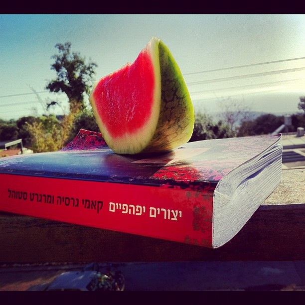 υπέροχες φωτογραφίες! (θα πάθαινα υστερία αν έβλεπα μια φέτα καρπούζι πάνω σε βιβλίο μου!) 🙂