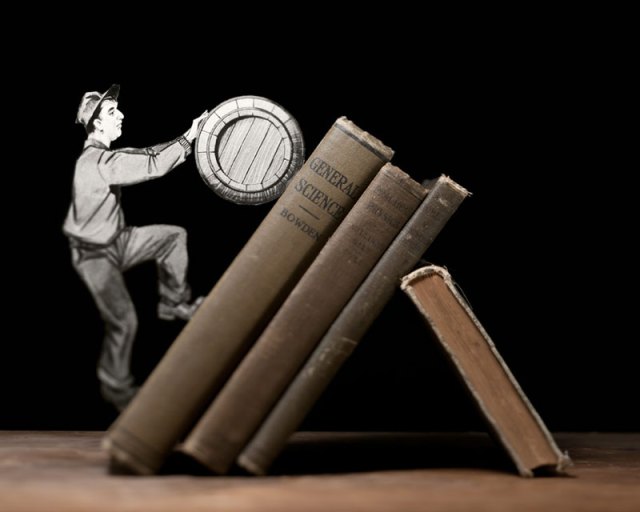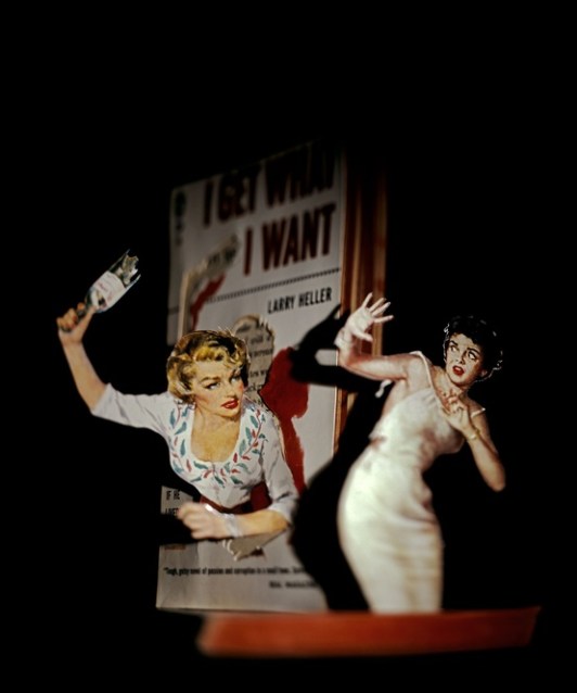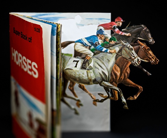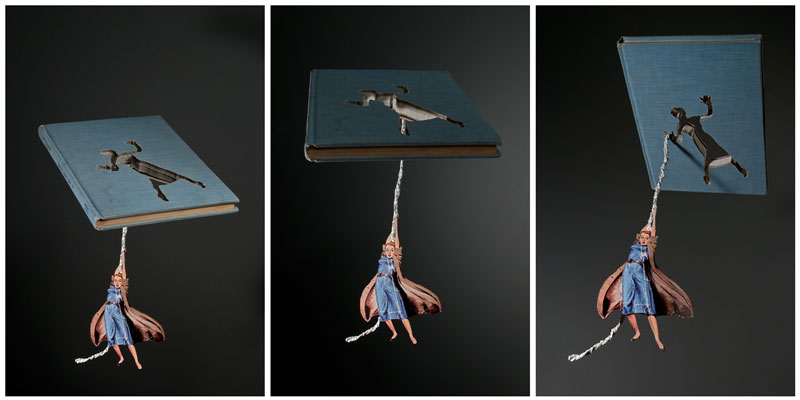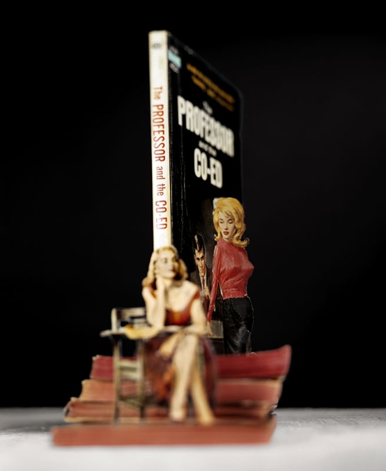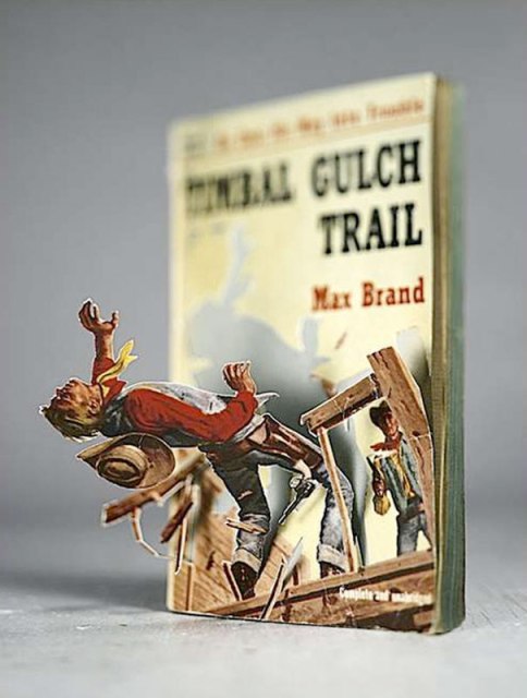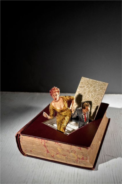 Μια γυναίκα το σκάει από το οπισθόφυλλο της Τζέιν Έιρ, ένα ζευγάρι αναζητά την έξοδο κινδύνου στις σελίδες ενός μυθιστορήματος, ένα pin up κοιμάται πάνω σε μια στοίβα με αδιάβαστα βιβλία, στρατιώτες προσπαθούν να σκαρφαλώσουν σε ένα χάρτινο πύργο για να τον κατακτήσουν, ένα κοριτσάκι κάνει σκοινάκι στη σελίδα 125, μια παρέα αγοριών βάζει σημάδια σε έναν γιγαντιαίο χάρτη του γαλαξία, μια αθλήτρια κάνει πατινάζ στο 3ο κεφάλαιο ενός παλιού επιστημονικού συγγράμματος, δυο καουμπόηδες έχουν βγάλει τα όπλα στο εξώφυλλο ενός γουέστερν… Στο δημιουργικό σύμπαν του καλλιτέχνη Thomas Allen όλα είναι εφικτά. Οι ήρωες ζωντανεύουν και ζουν τις δικές τους περιπέτειες έξω απ’ τα βιβλία, πέρα από τη φαντασία του συγγραφέα που τους δημιούργησε. Αυτά τα πρωτότυπα γλυπτά είναι εμπνευσμένα από το View-Master, το αγαπημένο παιδικό παιχνίδι με τις εικόνες. Ο Allen κόβει προσεκτικά τις φιγούρες από τα εξώφυλλα παλιών βιβλίων, τις απελευθερώνει και δημιουργεί ιστορίες πάνω στο χαρτί. Τα έργα του έχουν εκτεθεί στις Foley Gallery στη Νέα Υόρκη, G. Gibson Gallery στο Σιάτλ και 1000 Eventi Gallery στο Μιλάνο.