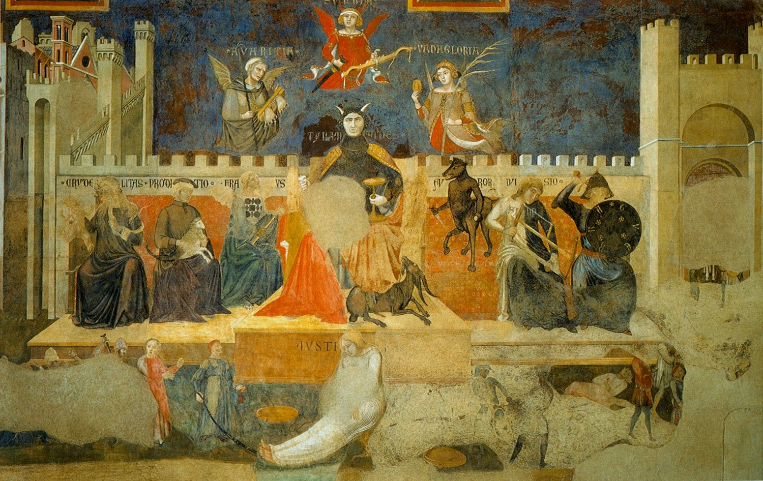 Υ.Γ. Δεν θα μπορούσε να επιλεχθεί καλύτερο έργο από τον πίνακα Allegoria del Cattivo Governo (1338-1339) του Ambrogio Lorenzetti, για να κοσμήσει το εξώφυλλο ενός τέτοιου μυθιστορήματος.