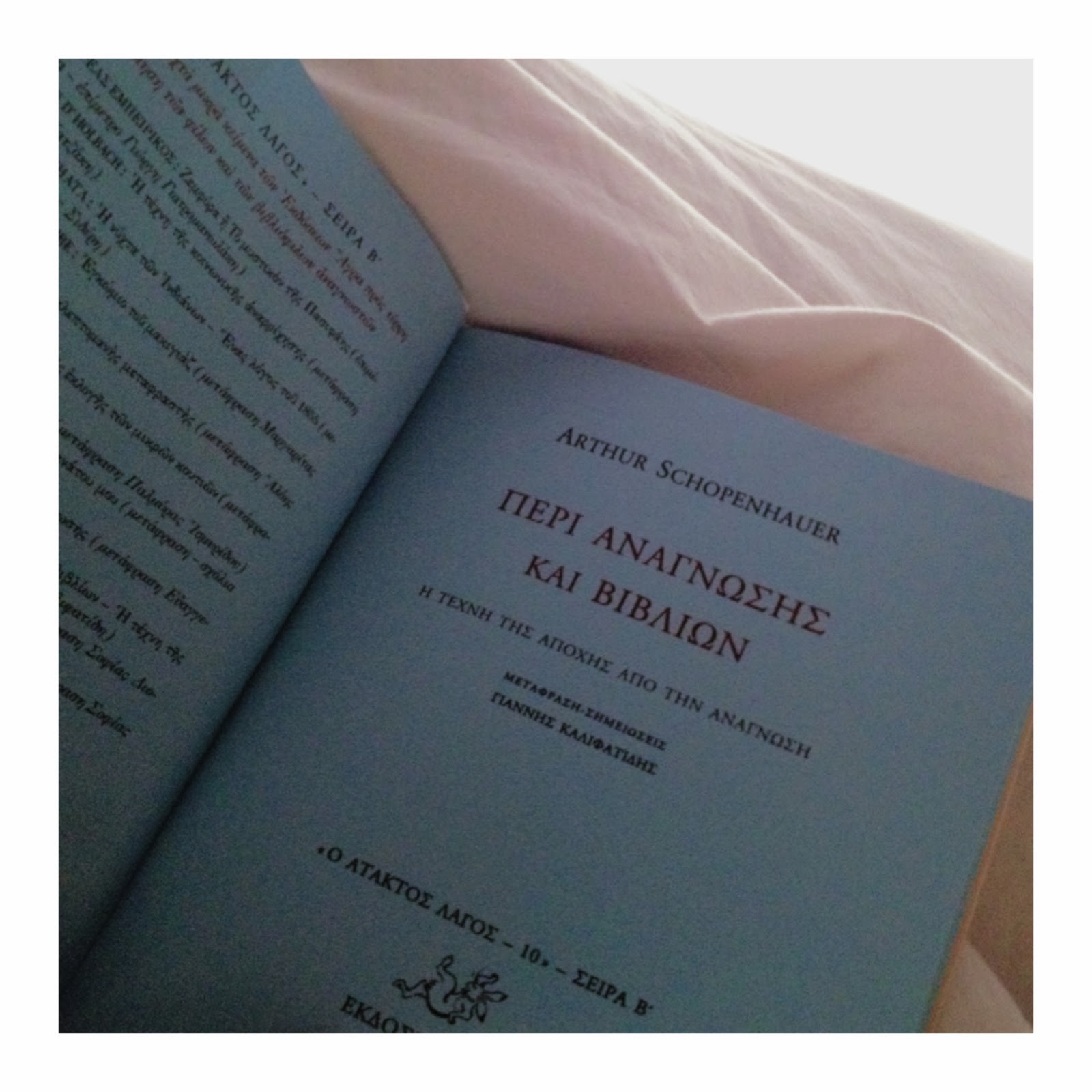 Σ’ αυτό το ολιγοσέλιδο δοκίμιο (αποτελεί το κεφάλαιο ΧΧΙV του Parerga und Paralipomena), το οποίο κυκλοφορεί από τις εκδόσεις Άγρα και περιλαμβάνεται στην υπέροχη σειρά του Άτακτου Λαγού-μια σειρά στην οποία φιλοξενούνται σύντομα δοκίμια και διηγήματα, μικρά αριστουργήματα των γραμμάτων, τυπωμένα εξαιρετικά σε πολυτελές υδατογραφημένο χαρτί-, o Γερμανός φιλόσοφος (1788–1860) μας προτρέπει να κλείνουμε πιο συχνά τα βιβλία, να στοχαζόμαστε και να βουτάμε χωρίς ανάσα στη ζωή.