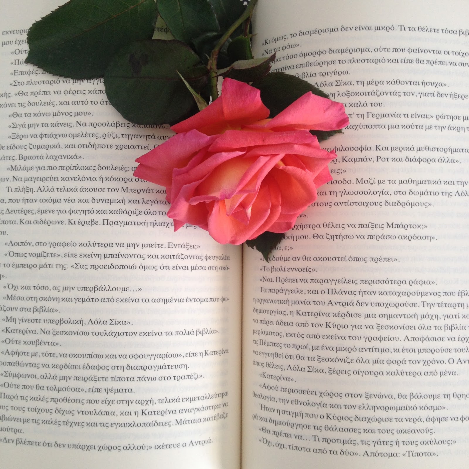8:30 Πρωινό στη βεράντα. Τριαντάφυλλα από τη γλάστρα, μισάνοιχτα βιβλία, μυρωδιά από φρεσκοκομμένο καφέ.
