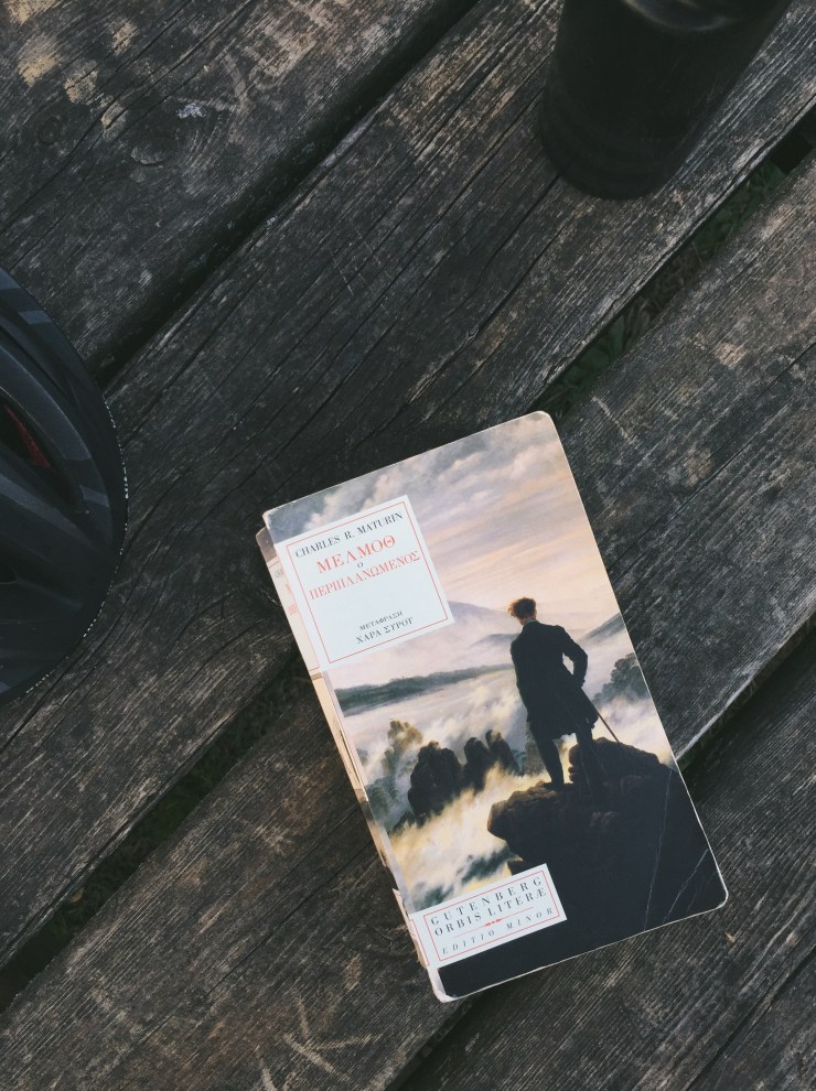 Κάνω επίσης μεγάλα διαλείμματα για να ξεκουραστώ και να διαβάσω το βιβλίο μου στα ξύλινα παγκάκια μέσα στη γαλήνη της φύσης. Εχθές είχα μαζί μου και τον 14ο τόμο από τη μνημειώδη σειρά Orbis Literae των εκδόσεων Gutenberg Μέλμοθ ο Περιπλανώμενος (μτφρ. Χαρά Σύρου), τον οποίο έχω διαβάσει τρεις φορές και ανατρέχω σε αυτό πολύ συχνά σαν να διαβάζω ένα ποίημα. Από όλα τα βιβλία γοτθικής λογοτεχνίας που απολαμβάνω με απίστευτη ηδονή, ξεχωρίζω αυτό το ογκώδες έργο του Charles R. Maturin. Πρόκειται για ένα σπονδυλωτό μυθιστόρημα με εγκιβωτισμένες αφηγήσεις από τις περιπλανήσεις του καταραμένου σατανικού Μέλμοθ, ο οποίος είναι καταδικασμένος να τριγυρνά στον κόσμο ανά τους αιώνες, αναζητώντας θύματα που με αντάλλαγμα την ψυχή τους θα παραδοθούν για λίγο σε επίγειες δαιμονικής χαράς απολαύσεις. Μεσαιωνικά μοναστήρια, ζοφερά μπουντρούμια της Ιεράς Εξέτασης, ρομαντικοί έρωτες που συνθλίβονται από το κακό, στοιχειωμένα οικήματα, δαιμονισμένοι άνθρωποι, διαβολικά πορτραίτα: οι σελίδες του Μέλμοθ είναι όπως εύστοχα αναφέρει ο Κυριάκος Αθανασιάδης στην εισαγωγή: «ένα αυθεντικά κολασμένο ποίημα – ένα φρενιασμένο κομπολόι ιστοριών που κάποτε θα αναπηδήσει ακάλεστο στη μνήμη σου και, για μια άγρια στιγμή, άσχετα από την όποια συντροφιά σου ή τις ασχολίες σου, θα σε στοιχειώσει».