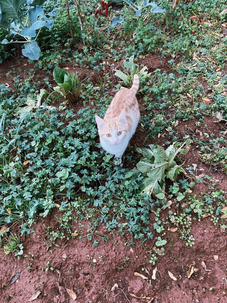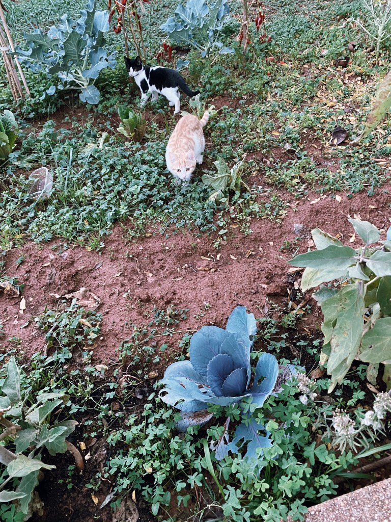 Τα δε μαρούλια, όλο κουπ, φύλλο και φράντζα, παρακολουθούν σταστισμένα τον Ερμόλαο, αλλά μένουν εντελώς άπραγα όταν βλέπουν τις δόλιες φτωχοστάρλετ γάτες να πετάγονται αλαφιασμένες μέσα από τις πιπεριές και να σκαρφαλώνουν σαν δαιμονισμένες στις μάντρες. Το ίδιο κάνουν και οι πιπεριές. Και οι μελιτζάνες. Δεν κουνιέται φύλλο.