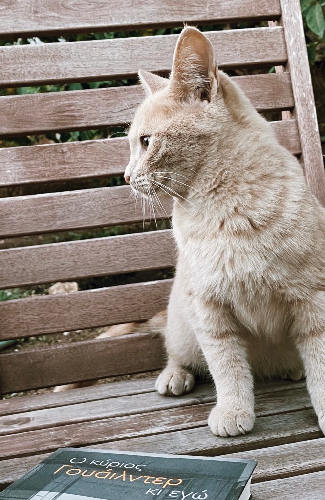 Ο Pitsis Σκέτο, γνωστός από τη μεγάλη επιτυχία του Ο Γατόπαρδος σε σκηνοθεσία του Γατίνο Βισκόντι, είναι ο θιασάρχης των γατιών, η αιτία που υιοθετήσαμε ολόκληρο το μπουλούκι που περιόδευε στη γειτονιά. Τρώει μόνο πατέ και στο καμαρίνι του θέλει μονάχα εμφιαλωμένο νερό σε θερμοκρασία δωματίου (και ένα καναρίνι). Έχει αποφοιτήσει από τη Σχολή του Βρετανικού Βασιλικού Θεάτρου με έπαινο Άντριου Λόιντ Γατέμπερ και επειδή φέτος θα ανεβάσει για πρώτη φορά Σαίξπηρ -το Catbeth- έχει πέσει με τα μούτρα στη μελέτη για να ακονίσει νύχια και πνεύμα. Είναι μεγάλος βιβλιοφάγος, ξημεροβραδιάζεται δίπλα μου όταν διαβάζω στον κήπο και του αρέσει πολύ ο Κόου (όπως βλέπετε), ο Μπάλαρντ και ο Γκράχαμ Γκρην.