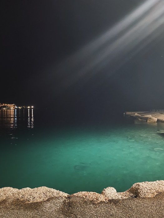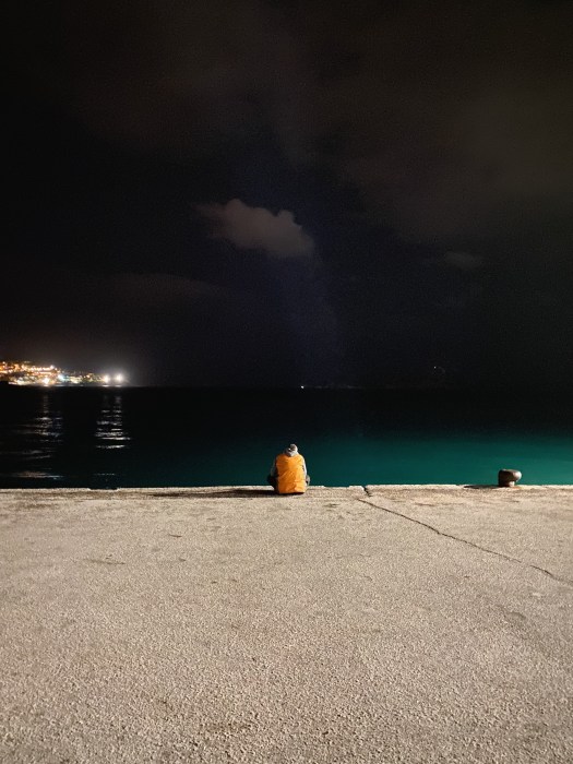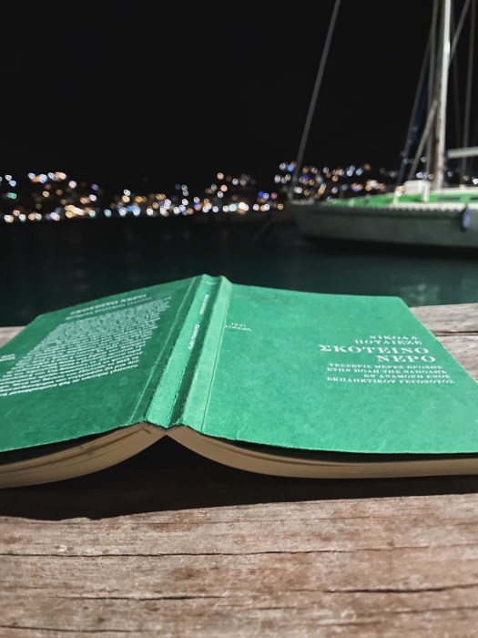 Σκέψου τη θάλασσα, το σκοτεινό νερό, σαν ψίθυρος λίγο πριν ξεσπάσει η βροχή, απειλητική, παράξενα πράσινη κοντά στο λιμάνι από τις λάμπες του ηλεκτρικού και κατάμαυρη στα ανοιχτά, πέρα απ’ το φάρο. Ένας κίτρινος ουρανός έτοιμος να εκραγεί, να σκάσει μπροστά σου σε χίλια δυο κομμάτια, και ένα νερό που ανά πάσα στιγμή θα κυριαρχήσει στα πάντα, όχι με ορμή αλλά με μια ήσυχη, μοχθηρή, απόκοσμη δύναμη.