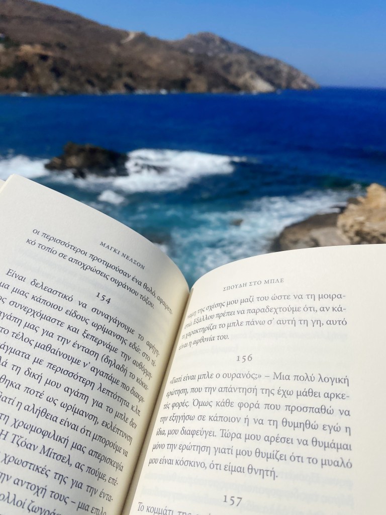 ΥΓ. Αυτό το καλοκαίρι που αρνούμαι ότι τέλειωσε, έζησα σε ένα μικρό ψαροχώρι των Κυκλάδων, το δικό μου έρωτα με το μπλε. Έντυσα το ποστ αυτό με κάποιες από τις ωραιότερες μπλε στιγμές που προσπάθησα -έστω φωτογραφικά- να κρατήσω λίγο πιο σφιχτά στη χούφτα μου, δίνοντας όσο μπορώ μια μικρή παράταση στην ανεμελιά. «Το απλό γεγονός ότι υπάρχει αυτό το μπλε κάνει τη ζωή μου αξιοσημείωτη, μόνο και μόνο που το έχω δει. Που έχω δει τέτοια όμορφα πράγματα. Που έχω βρεθεί ανάμεσά τους. Χωρίς επιλογή», όπως λέει και η Νέλσον.