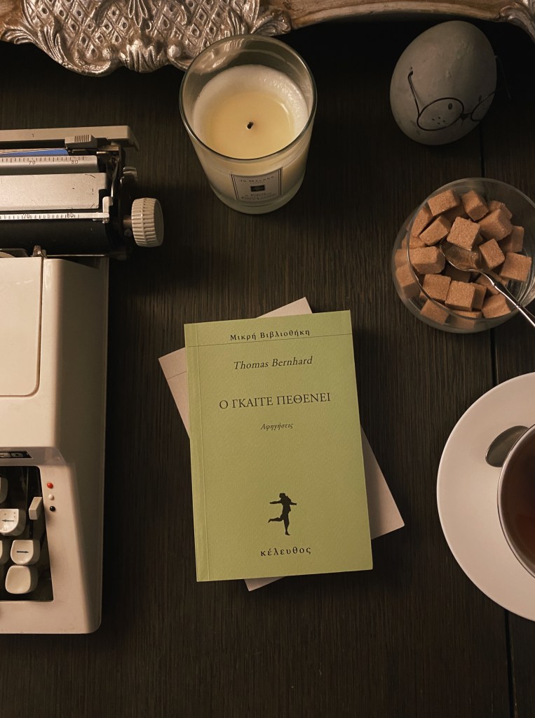Ο Μπέρνχαρντ, ο Αυστριακός συγγραφέας του Μπετόν, του Αποτυχημένου, της Ξύλευσης και του Αφανισμού κ.ά., ο οποίος γεννήθηκε το 1931 στην Ολλανδία και πέθανε το 1989 στην Αυστρία, σε αυτό εδώ το μικρό πράσινο βιβλιαράκι με τον σκόπιμα ανορθόγραφο τίτλο «Ο Γκαίτε πεθένει» (μτφρ. Σοφία Αυγερινού, εκδ. Κέλευθος) -η ανορθογραφία του τίτλου (πεθένει αντί για πεθαίνει) ακολουθεί κατ’ αναλογία την σκωπτική ανορθογραφία του πρωτότυπου (schtirbt αντί για stirbt), με την οποία ο συγγραφέας ειρωνεύεται το γερμανικό πνεύμα του Γκαίτε-, επανέρχεται στο ίδιο μοτίβο που κυριαρχεί σχεδόν σε όλα τα βιβλία του: το μονόλογο του αντικοινωνικού ήρωα που ασφυκτιά μέσα στο οικογενειακό του περιβάλλον, που νιώθει να πνίγεται από κάθε είδους λειτουργικό ανθρώπινο δεσμό, που δονείται βαθύτατα, μέχρι τα θεμέλια της ύπαρξής του, από την απέχθεια για τον κόσμο γύρω του και αηδιάζει με την υποκρισία και τις αόρατες και ορατές διασυνδέσεις με τις οποίες είναι φτιαγμένος ο κοινωνικός ιστός.