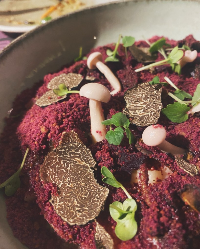 Η γεύση: Το εικονικό ριζότο που έφαγα στο Suma, το νέο gastrobar της Καλαμιώτου, όχι φτιαγμένο με ρύζι, αλλά με πατάτες, σελινόριζα, μανιτάρια και χώμα από ξύσμα παντζαριού.