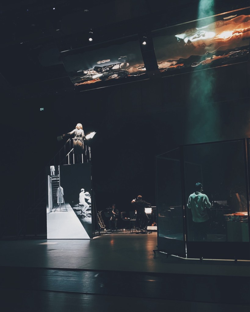 Η μεταμοντέρνα όπερα: Διάβασα το μυθιστόρημα «Ο πεθαμένος και η ανάσταση», αφού είδα τη μεταμοντέρνα μεταγραφή του έργου σε όπερα από τον Νικόλα Τζώρτζη, στην Εναλλακτική Σκηνή της Εθνικής Λυρικής Σκηνής. Μια παράσταση γεμάτη συμβολισμούς, σε εξαιρετική σκηνοθεσία της Αναστασίας Κουμίδου και υποδειγματική μουσική διεύθυνση του Κορμήλιου Σελαμσή, με τον υπέροχο και αέρινο, αλλά ταυτόχρονα στιβαρό, Αναστάση Ροϊλό στον πρωταγωνιστικό ρόλο του συγγραφέα, τον βαρύτονο Νίκο Κύρτσο στο ρόλο του ανώνυμου νέου που αυτοκτονεί και ανασταίνεται και την υψίφωνο Νίκη Λαδά «στο ρόλο της γυναίκας που είναι πότε μάνα, πότε ερωμένη, πότε πόρνη και πότε γυναίκα-πόλη».