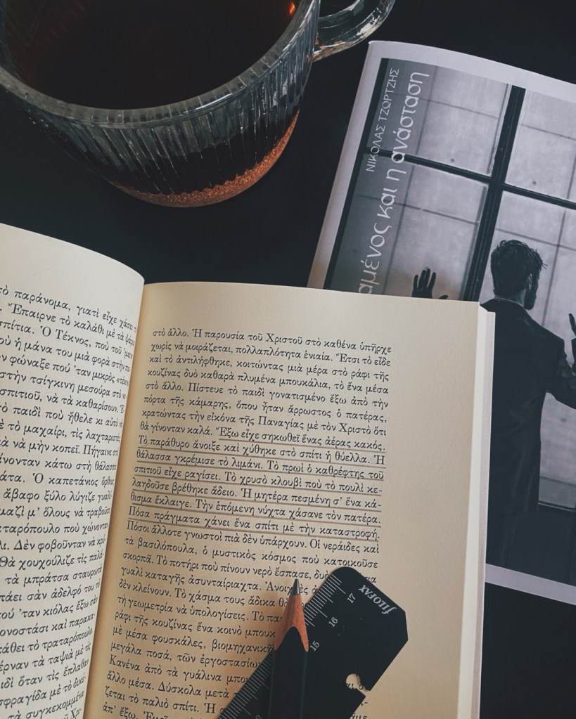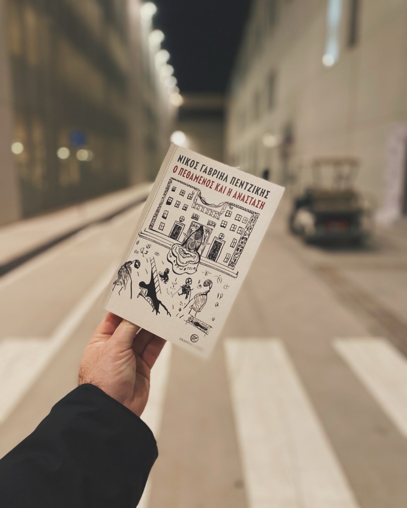 Το βιβλίο: Το μυθιστόρημα του Νίκου Γαβριήλ Πεντζίκη «Ο πεθαμένος και η ανάσταση» που διάβασα αυτή την εβδομάδα και δεν μπορώ να συνέλθω. Αν με ρωτήσεις τι σημαίνει ένα πραγματικό αριστούργημα θα σου πω: αυτό που σπάει μέσα σου τον κόσμο ολόκληρο, για να σου δώσει τη δυνατότητα να τον χτίσεις ξανά λέξη λέξη — για να στερεώσεις τον καινούργιο ουρανό.