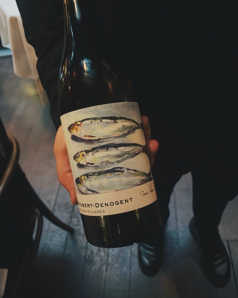 Ο sommelier Γιώργος Σωμαράκης με τα wine pairings που μας πρότεινε έκανε το γεύμα μας εμπειρία. Ερωτεύθηκα τη φιάλη του Macon Villages «Les Sardines» του Domaine Robert Denogent -ένα ορυκτό λευκό κρασί από σταφύλια Chardonnay, με παλαίωση για 24 μηνών- που έχει ζωγραφισμένες σαρδελίτσες στην ετικέτα του.