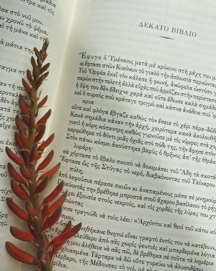 Αυτή η μεταμοντέρνα εκδοχή του μύθου του Ορφέα και της Ευρυδίκης, με τον Βενσάν Κασέλ να παίζει τον Χάροντα, τον γιο του Ερέβους και της Νύχτας που οδηγεί με το ταξί του τον Ορφέα στον Κάτω Κόσμο, με τον Άδη να μετατρέπεται σε ζοφερό hotel με AI, με κοστούμια από τους Dolce & Gabanna και με απολαυστικές άριες από σπουδαίες όπερες, ήταν ένα κινηματογραφικό ποίημα, με βαθύτατα συγκιντικές στιγμές, άλλοτε σαν όνειρο και άλλοτε σαν εφιάλτης, ήταν η αφορμή για να ξεκινήσω με τόση λαχτάρα την ανάγνωση αυτού του μοναδικού βιβλίου.