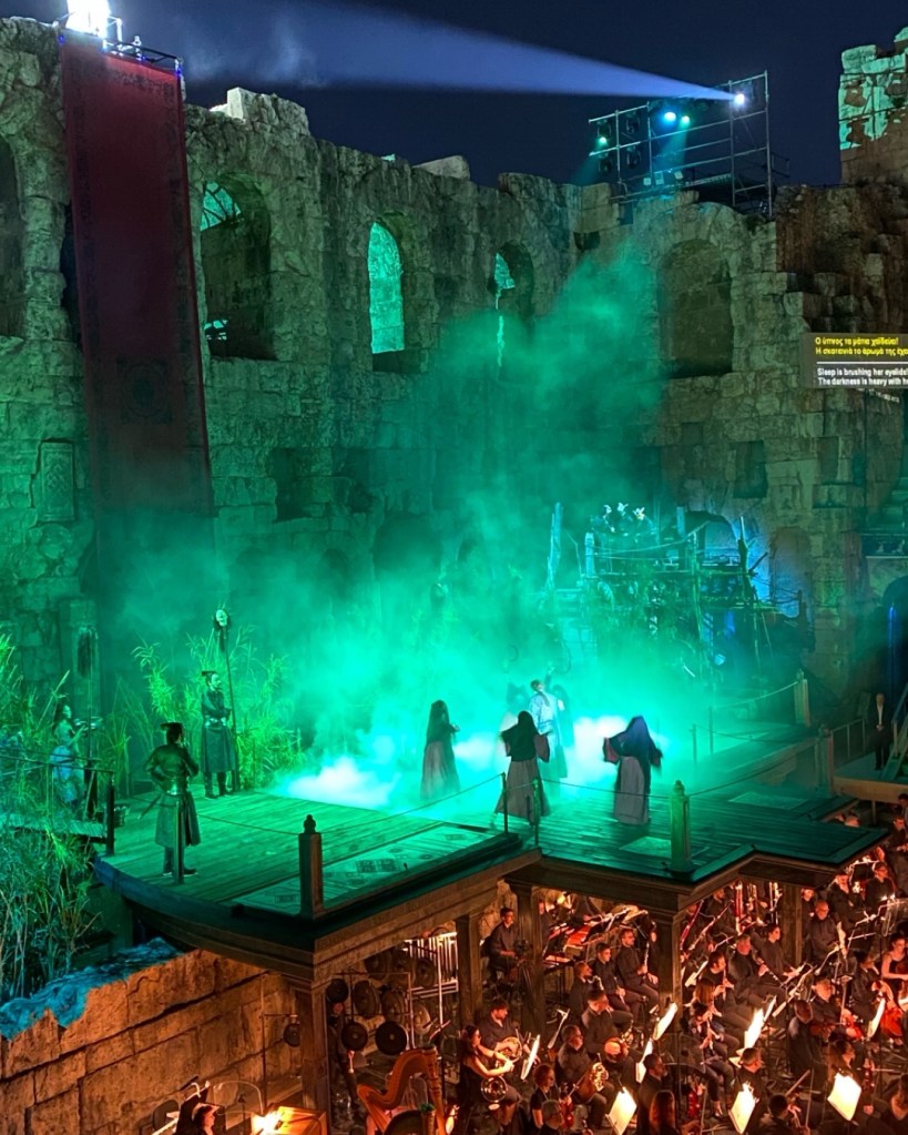 Για πρώτη φορά η σκηνή του Ηρωδείου επεκτάθηκε καλύπτοντας τον μισό σχεδόν χώρο που καταλαμβάνει η ορχήστρα. Η μεγάλη αυτή σκηνή που δημιούργησε η Χλόη Ομπολένσκι, αποτελεί μία από τις καινοτομίες που αλλάζει τα δεδομένα στο Ηρώδειο. Μια άλλη, εξίσου brilliant ιδέα, του σκηνοθέτη Αντρέι Σερμπάν, ήταν η στρατηγική τοποθέτηση της χορωδίας στην κερκίδα Ε του κάτω διαζώματος. Τα μέλη της χορωδίας, ντυμένα σαν κανονικοί θεατές για να μην ξεχωρίζουν, σηκώνονταν όρθια και ερμήνευαν τα χορωδιακά μέρη, εντυπωσιάζοντας το κοινό, τραγουδώντας ουσιαστικά ανάμεσά τους, δημιουργώντας ένα αίσθημα διάδρασης, επικοινωνίας και μέθεξης.