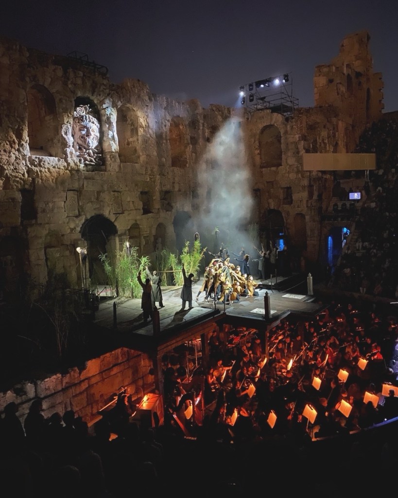 Η όπερα: Ο θρίαμβος της Τουραντότ στο Ηρώδειο, σε μια υποδειγματική παραγωγή από την Εθνική Λυρική Σκηνή που έγραψε ιστορία! Τα σκηνικά με τις καλαμιές και τα αυτοσχέδια σπίτια των χωρικών, ενσωματωμένα πλήρως μέσα στην επιβλητική και άγρια ομορφιά των αρχαίων μαρμάρων του Ηρωδείου, οι ατμοσφαιρικοί φωτισμοί των Ζαν Καλμάν και Σιμόν Τροττέ, τα κοστούμια που δέσποζαν στη σκηνή σαν αληθινά έργα τέχνης, οι σπουδαίες ερμηνείες, η αριστουργηματική κινησιολογία-χορογραφία των Κέιτ Φλατ και Γεωργίας Τέγου, η εξαιρετική σκηνοθεσία από έναν βαθύ γνώστη του Πουτσίνι, τον Αντρέι Σερμπάν, αλλά και το όραμα της διεθνούς φήμης Ελληνίδας σκηνογράφου και ενδυματολόγου Χλόης Ομπολένσκι, είναι κάποιοι από τους βασικούς λόγους για τους οποίους αυτή η Τουραντότ προκάλεσε τον ενθουσιασμό του κοινού. Η αύρα του κόσμου, τη νύχτα της πρεμιέρας που παρακολούθησα, είχε κάτι ορμητικό: τον ενθουσιασμό, τη μέθεξη και την ευγνωμοσύνη που νιώθει ο κόσμος όταν βρίσκεται αντιμέτωπος με μια αληθινή μυσταγωγία, με ένα διαμάντι της Τέχνης.