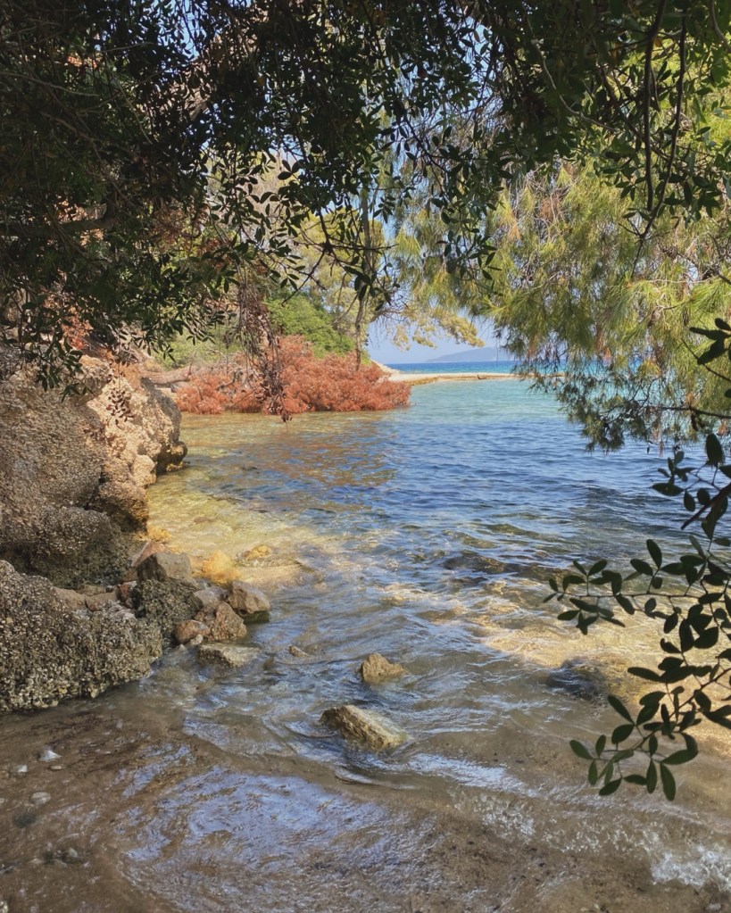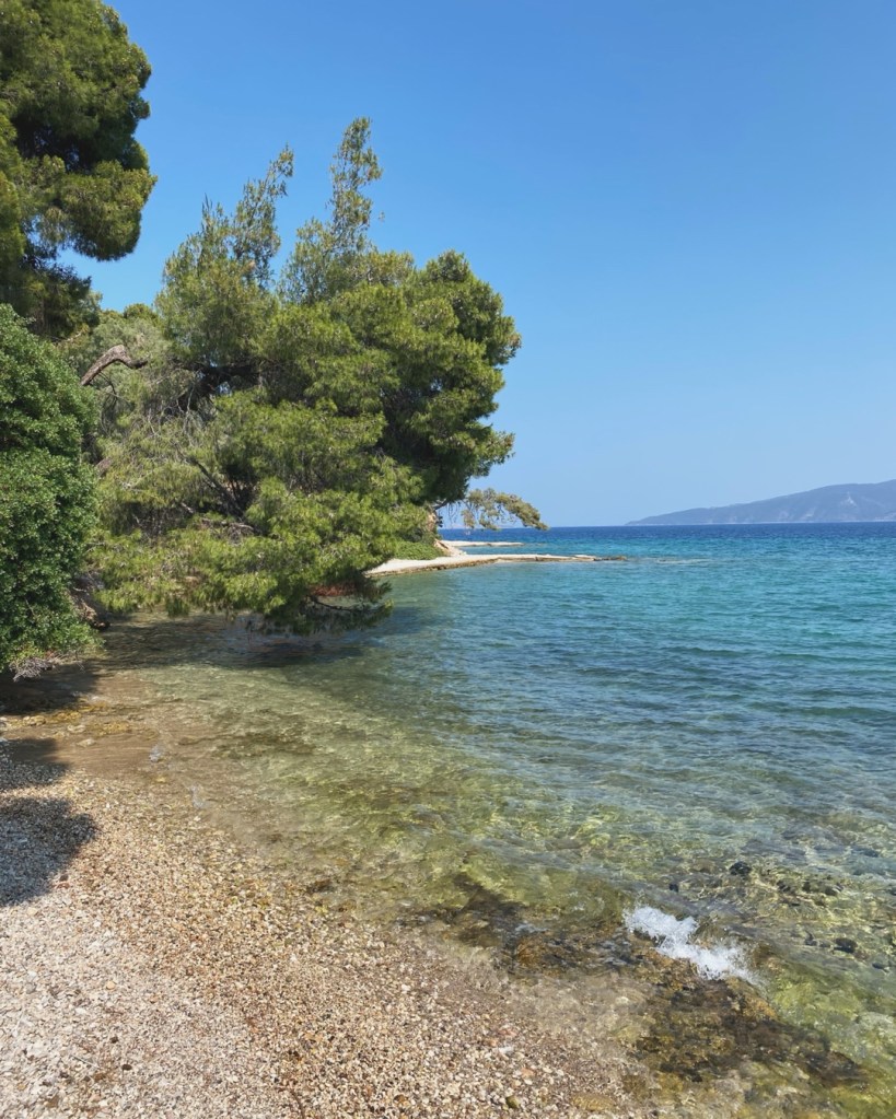 Τα μεσημέρια του Ιουνίου, σε μικρά -ακόμα άδεια- κολπάκια, όπου συντροφιά με ένα βιβλίο ξαπλώνεις στην άμμο, κάτω από τη σκιά ενός πεύκου που γέρνει ράθυμα πάνω από το νερό της θάλασσας.