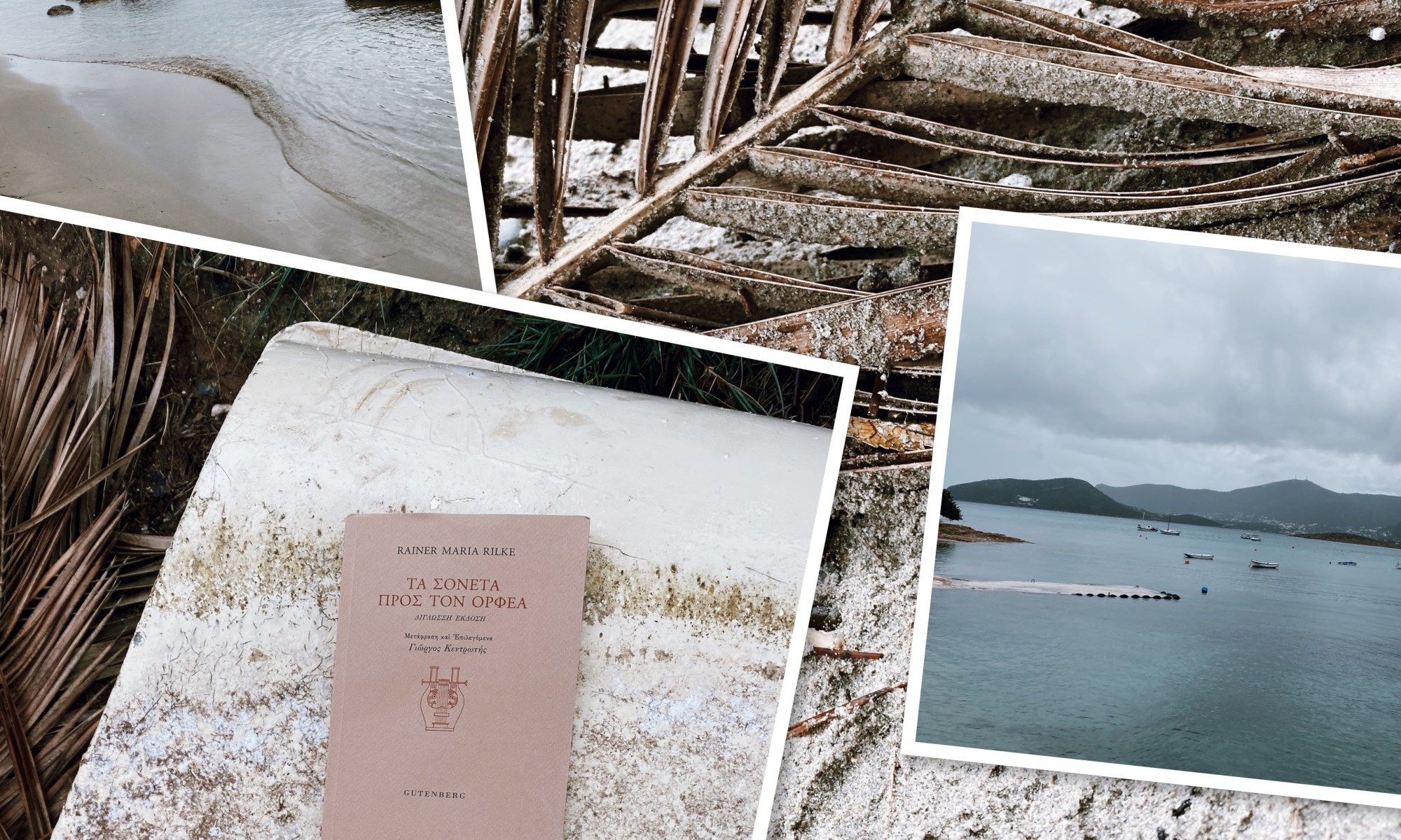 Οι μέρες είναι ολόιδιες σαν μία μόνο μέρα. Ολόκληρη την εβδομάδα βρέχει σχεδόν ασταμάτητα. Όταν κοπάζει η βροχή κατεβαίνουμε στη θάλασσα. Στο σακίδιό μου έχω ολοκαίνουρια βιβλία που παρέλαβα εχθές από τις εκδόσεις Gutenberg: τα σονέτα του Ρίλκε, τα διηγήματα του Πεσσόα για τα μυστήρια του θανάτου, το νέο πολύ ιδιαίτερο μυθιστόρημα του νομπελίστα Χάντκε …