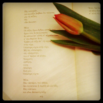 *Στίχος από το ποίημα Της Εφέσου, «Δυτικά της λύπης» - Οδυσσέας Ελύτης (εκδόσεις Ίκαρος).
