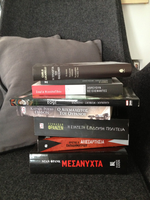 Ποτέ δεν κατάλαβα γιατί η φράση «να τα φας στο κρεβάτι» είχε αρνητική σημασία. Για τους βιβλιοφάγους ακούγεται σαν ευχή: Το να απολαμβάνεις το ένα βιβλίο μετά το άλλο ξαπλωμένος αναπαυτικά στα αφράτα μαξιλάρια σου είναι αληθινή ευτυχία. :-p Δεν σκέφτομαι τίποτα καλύτερο γι΄αυτά τα Χριστούγεννα: Λευκές παπλωματοθήκες, γκρι κουβέρτες, γαλλικούς καφέδες και μπισκότα βουτύρου. …
